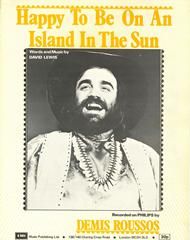 Happy To Be On An Island In The Sun composed by David Lewis, as recorded by Demis Roussos in the key of G Major arranged for voice and piano with guitar chords.