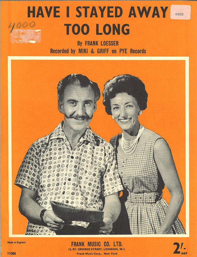 Have I Stayed Away Too Long, written by Frank Loesser, as performed by Miki & Griff, arranged for voice and piano with guitar chords.
