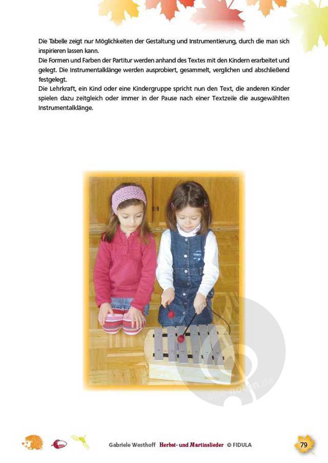 Die Liedgestaltung mit Stimme, Gesten, Bewegung, Tanz, Instrumenten, Körperklängen und einer Vielzahl an Materialien bildet den Schwerpunkt dieses Buches. Zu allen Liedern hat Gabriele Westhoff unterrichtspraktische und stimmbildnerische Aspekte zusammengetragen, die ein flexibles Eingehen auf die unterschiedlichen stimmlichen, motorischen sowie musikalischen Fähigkeiten und Voraussetzungen der Kinder ermöglichen.