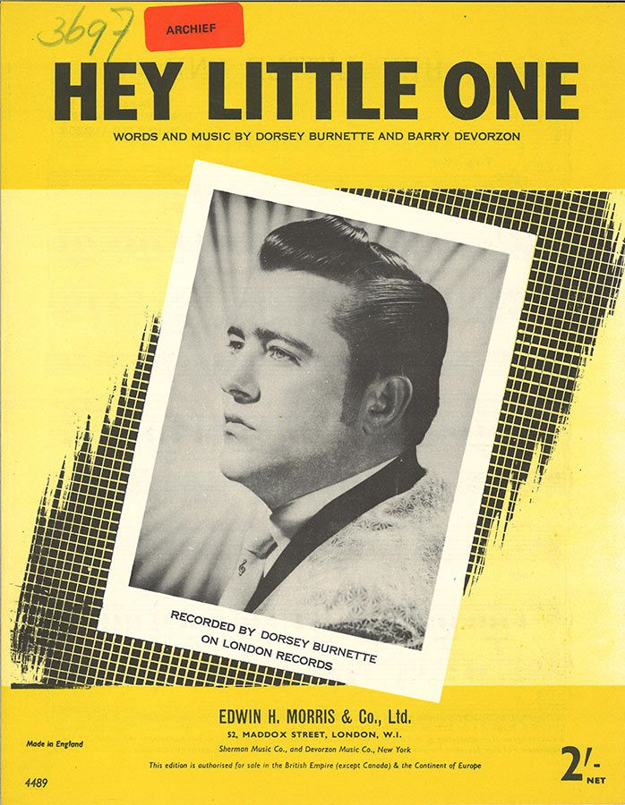 Hey Little One, as recorded by Dorsey Burnette, arranged for voice, guitar and piano.