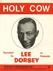 Holy Cow, written by Allen Toussaint, as performed by Lee Dorsey, arranged for voice and piano with guitar chords.
