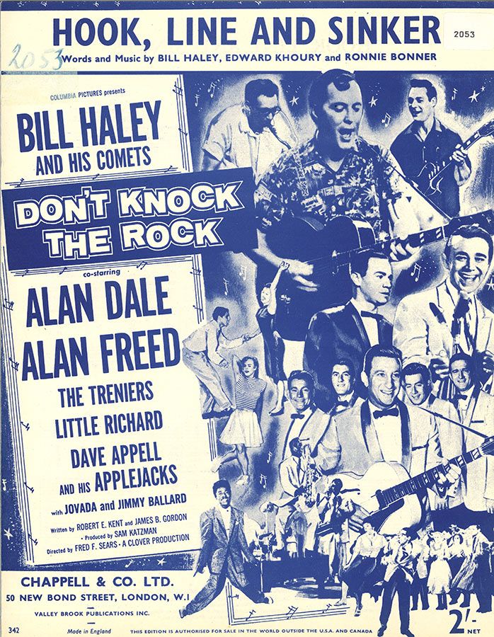 Hook, Line And Sinker, written by Bill Haley, Edward Khoury and Ronnie Bonner, as performed by Bill Haley & His Comets in the musical film 'Don't Knock The Rock', arranged for voice and piano with guitar chords.