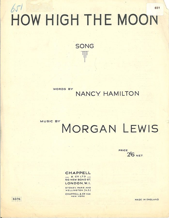 How High The Moon, written by Morgan Lewis with words by Nancy Hamilton, in the key of G Major arranged for voice and piano with guitar chords.