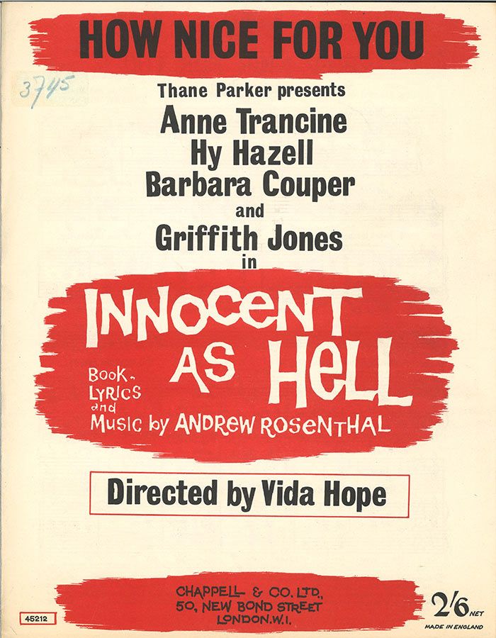 How Nice For You, written by Andrew Rosenthal, from the production 'Innocent As Hell', arranged for voice and piano with guitar chords.