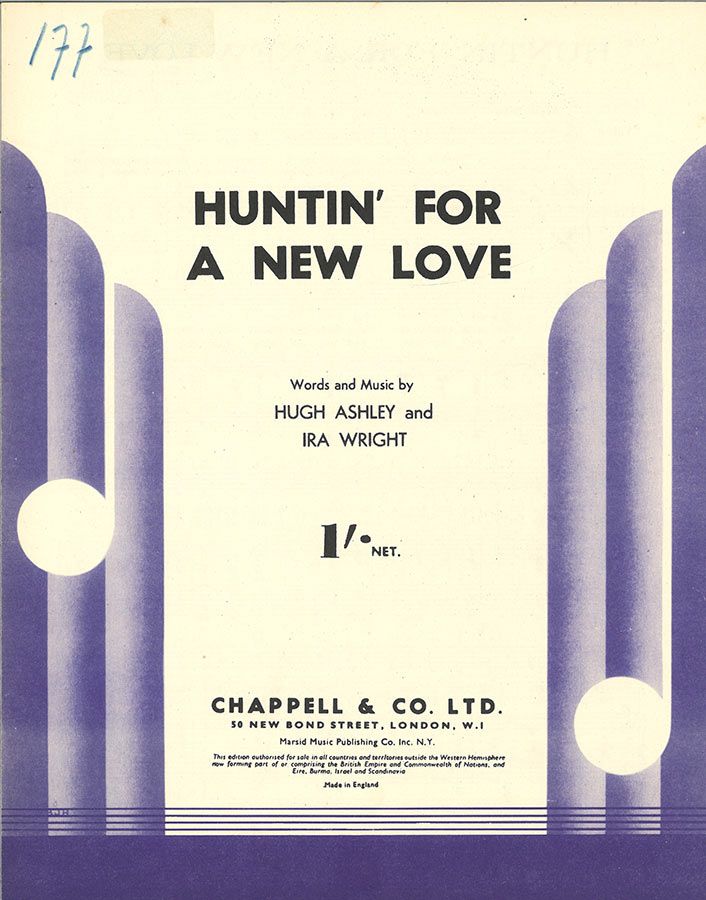 Huntin' For A New Love, written by Hugh Ashley and Ira Wright, arranged for voice and piano with guitar chords.
