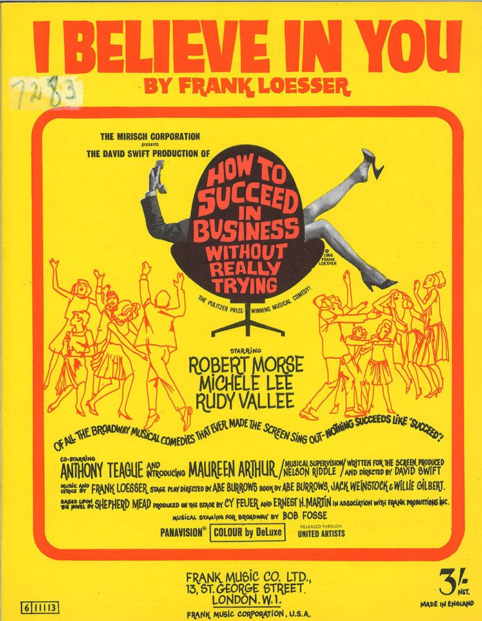 I Believe In You, written by Frank Loesser, from the musical 'How To Succeed In Business Without Really Trying', as recorded by Frank Sinatra, arranged for voice and piano with guitar chords.