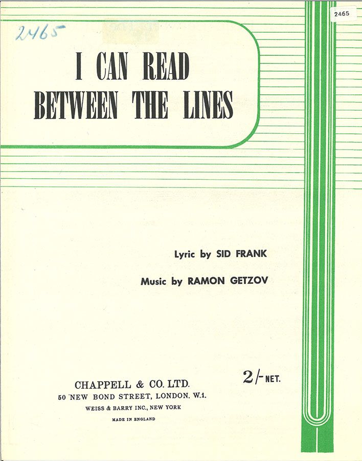 I Can Read Between The Lines, written by Ramon Getzov with wrods by Sid Frank, arranged for voice and piano with guitar chords.