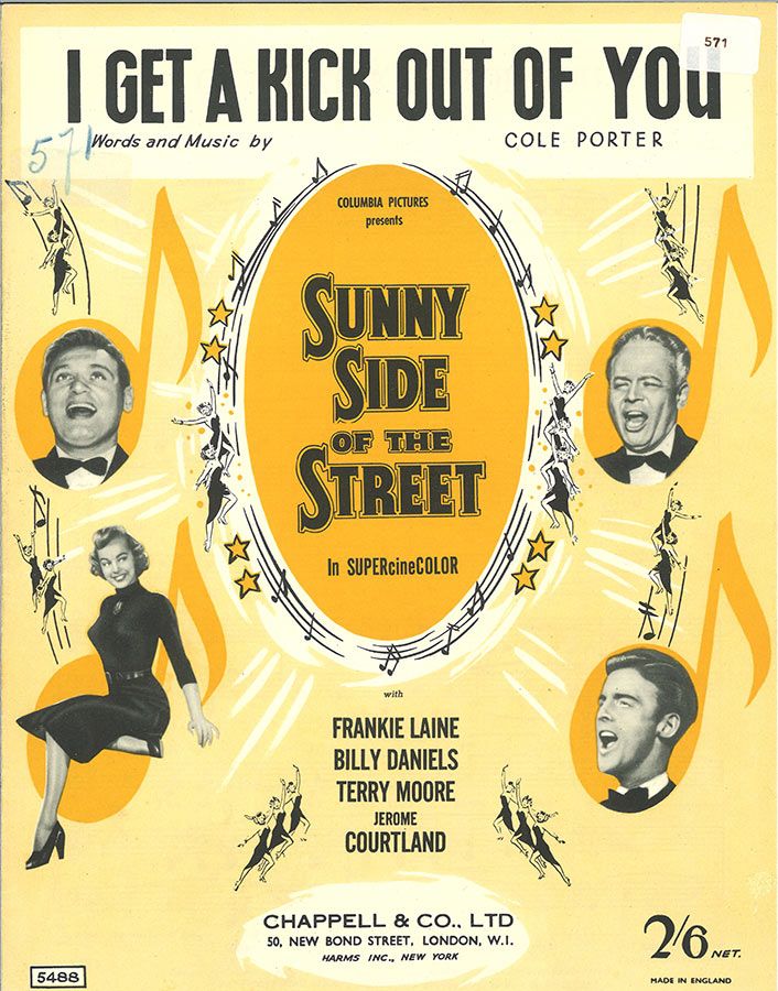 I Get A Kick Out Of You, written by Cole Porter, from 'Sunny Side Of The Street', arranged for voice and piano with guitar chords.