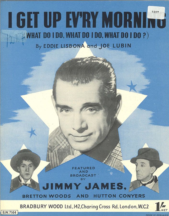 I Get Up Ev'ry Morning, (What Do I Do, What Do I Do, What Do I Do?) written by Joe Lubin and Eddie Lisbona, featured and broadcast by Jimmy James, arranged for voice and piano with guitar chords.