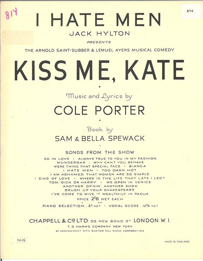 I Hate Men, written by Cole Porter from 'Kiss Me Kate', arranged for voice and piano with guitar chords.