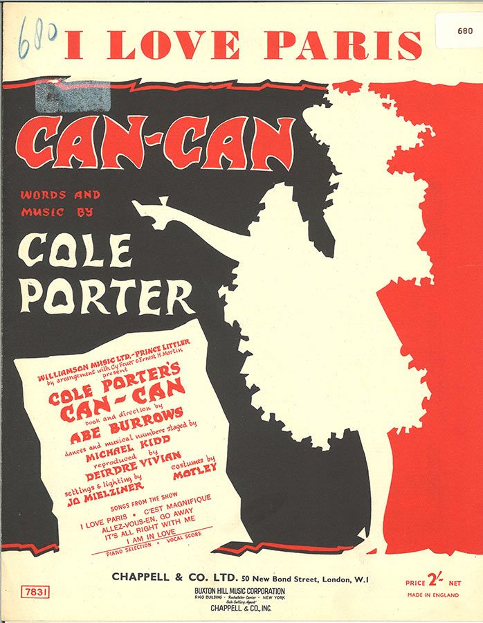 I Love Paris, written by Cole Porter, from 'Can-Can', arranged for voice and piano with guitar chords.