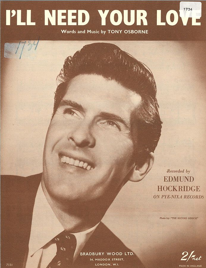I'll Need Your Love, written by Tony Osborne, as recorded by Edmund Hockridge, arranged for voice and piano with guitar chords.