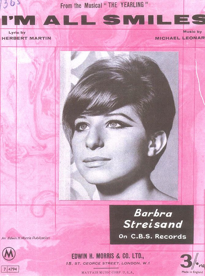 I'm All Smiles, from 'The Yearling', written by Michael Leonard with words by Herbert Martin, as recorded by Barbra Streisand and arranged for piano, voice and guitar.
