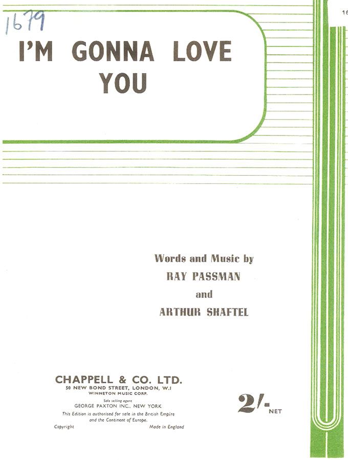 I'm Gonna Love You, written by Ray Passman and Arthur Shaftel, arranged for voice and piano with guitar chords.