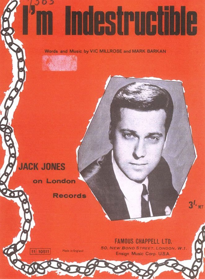 I'm Indestructible, as recorded by Jack Jones, arranged for voice and piano with guitar chords.