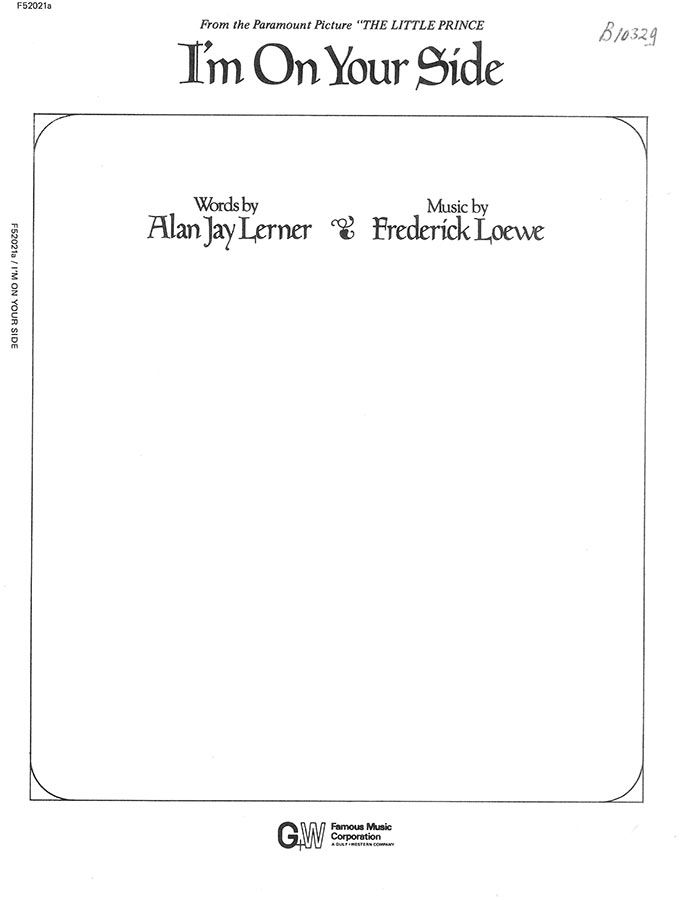 I'm On Your Side, written by Frederick Loewe with words by Alan Jay Lerner from the Paramount Picture 'The Little Prince', arranged for voice and piano with guitar chords.
