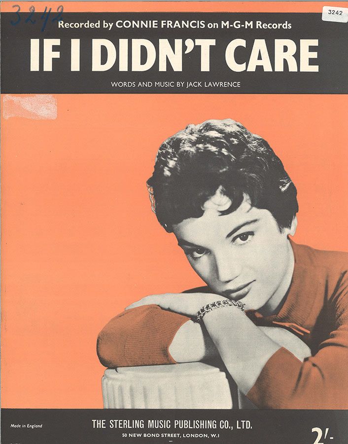 If I Didn't Care, composed by Jack Lawrence, as performed by Connie Francis in the key of Bb Major arranged for voice and piano with guitar chords.