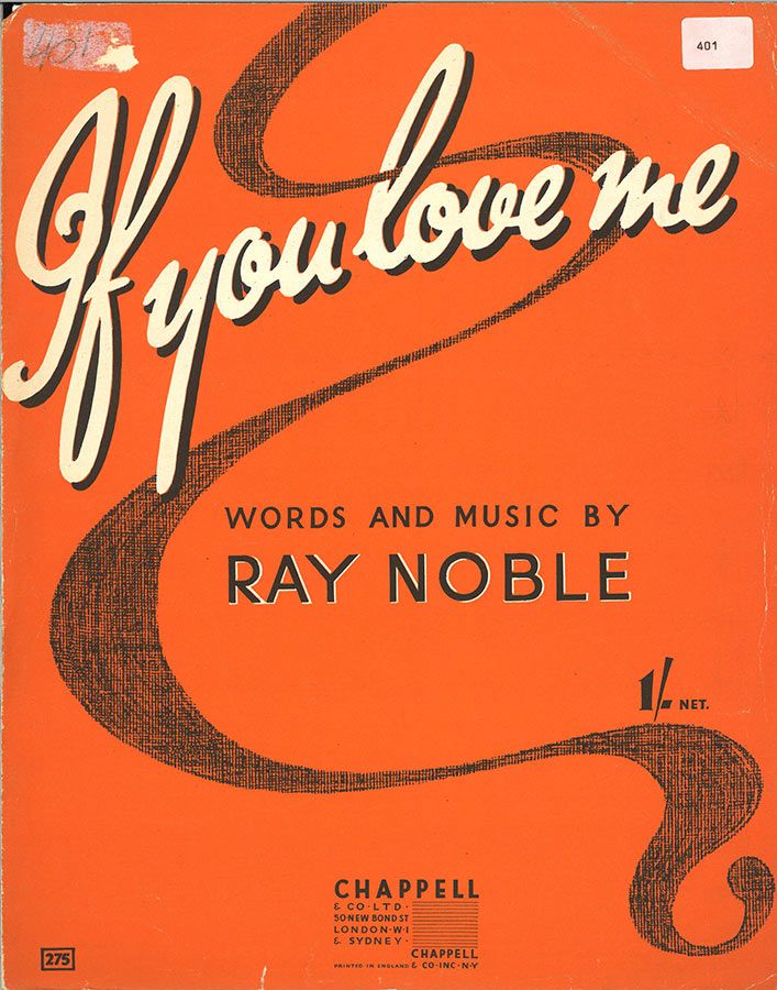 If You Love Me, written by Ray Noble, as performed by Al Bowlly, arranged for voice and piano with guitar chords.