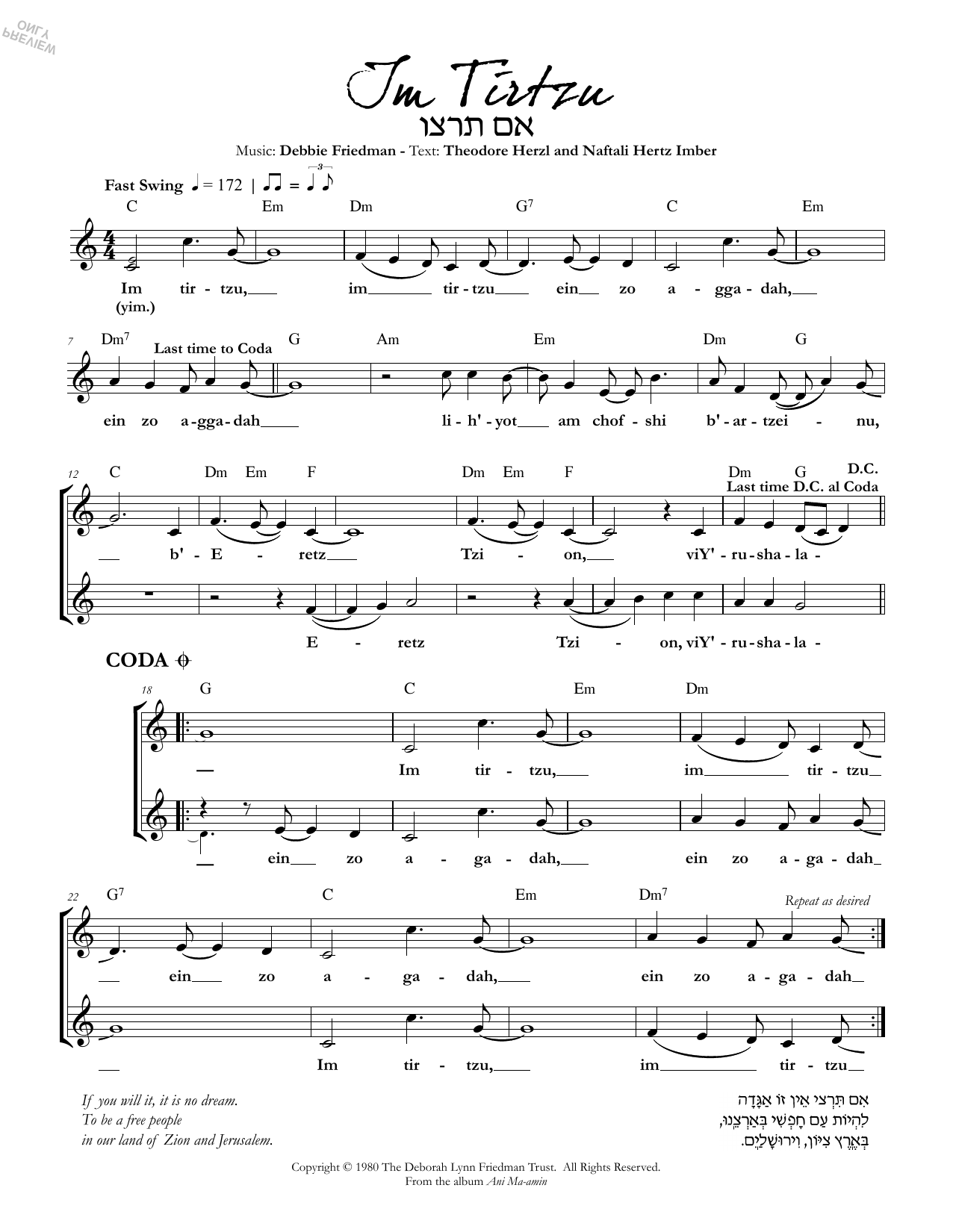Naphtali Herz Imber, Debbie Friedman