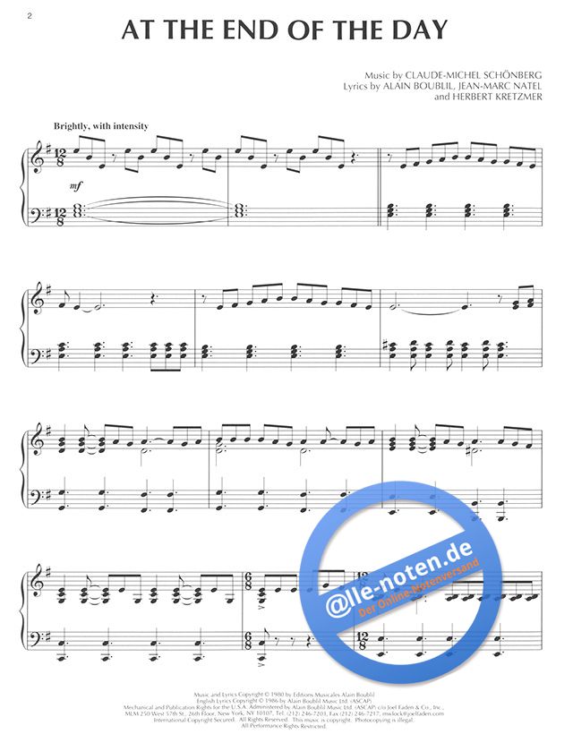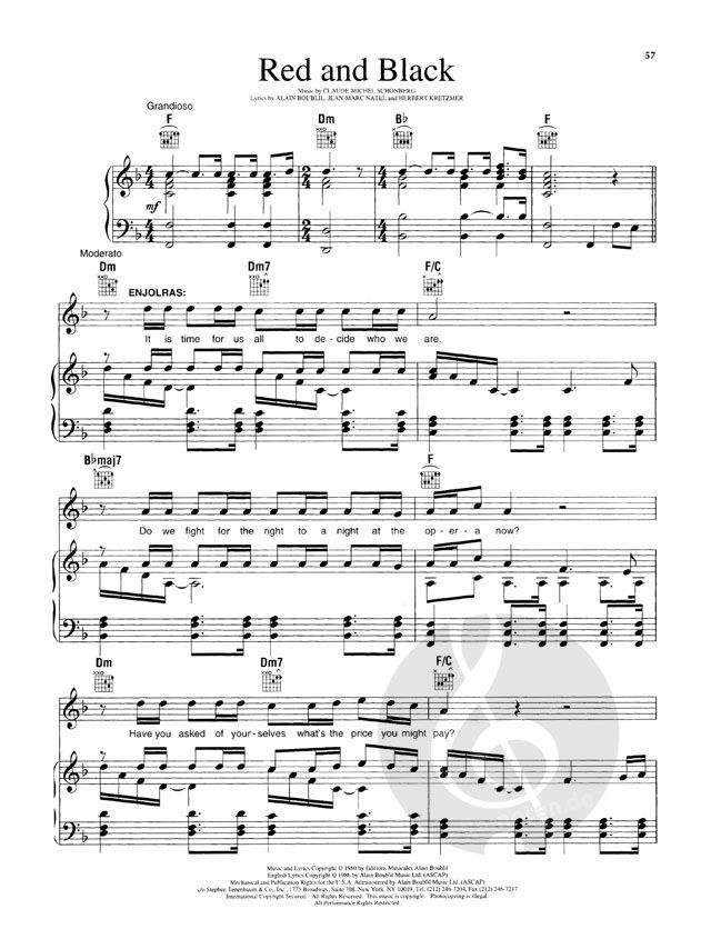 16 songs from the beloved musical, including 7 songs never before in print! Contains: At the End of the Day - Bring Him Home - Castle on a Cloud - Come to Me - Do You Hear the People Sing? - Empty Chairs at Empty Tables - A Heart Full of Love - I Dreamed a Dream - Look Down - Lovely Ladies - On My Own - One Day More - Red and Black - The Thenardier Waltz of Treachery - What Have I Done?, plus the bonus song Little People.