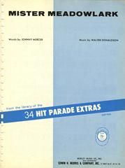 Mister Meadowlark composed by Walter Donaldson with words by Johnny Mercer in the key of Eb Major arranged for voice and piano with guitar chords..