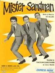 Mister Sandman, as performed by The King Brothers, arranged for voice, guitar and piano.