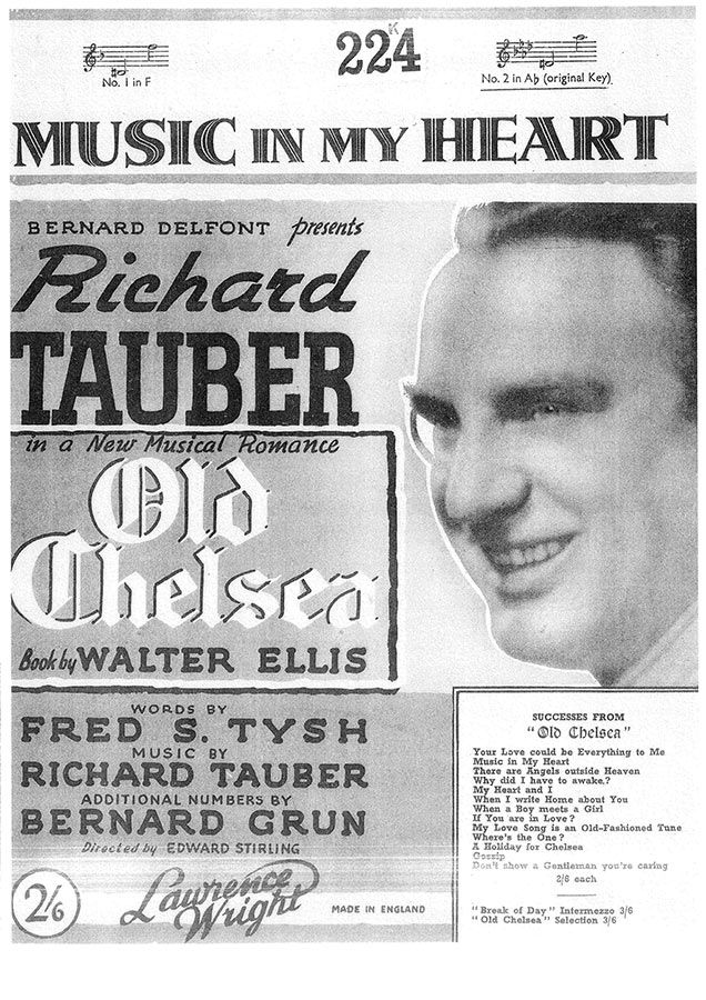 Music In My Heart, written by Richard Tauber with words by Fred S Tysh, as recorded by Richard Tauber, arranged for voice and piano.