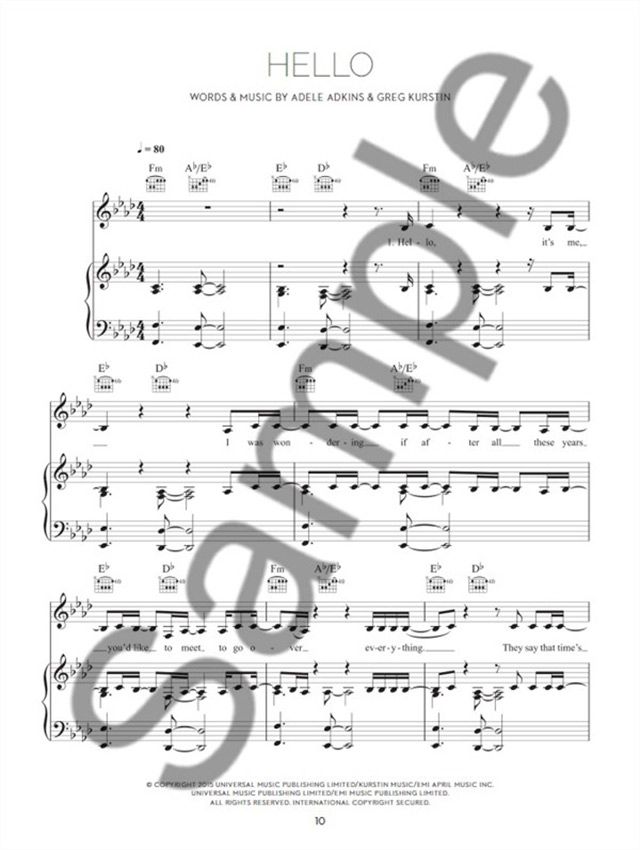 Pop-Noten für Klavier (rechte Hand Melodie), Gesang & Gitarre
