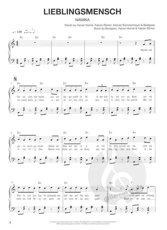 - Klavier (rechte Hand Melodie), Gesang & Gitarre