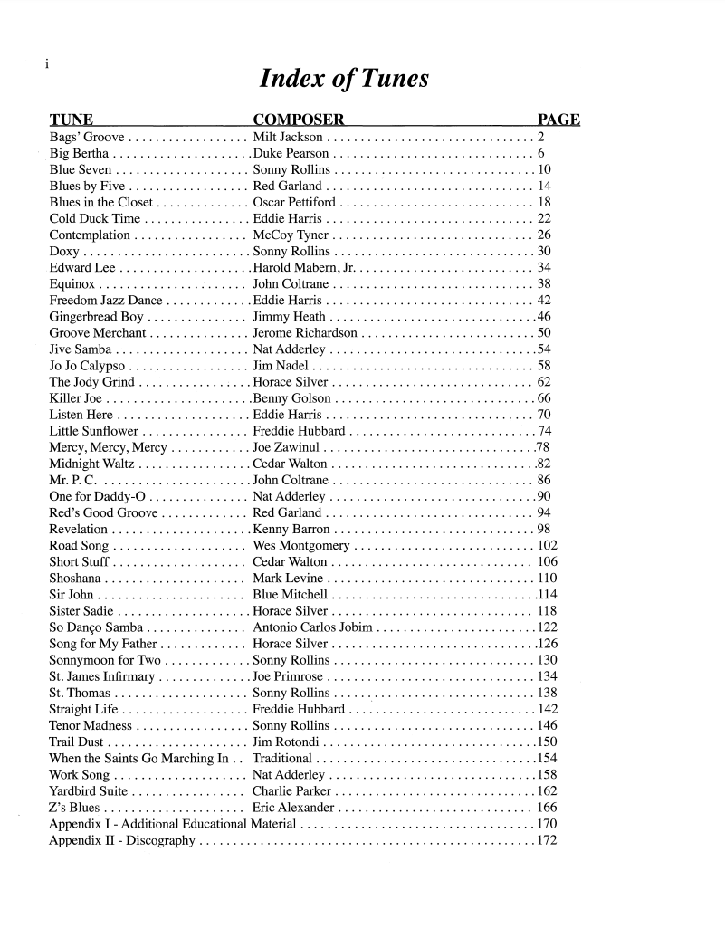 Das Fakebook enthält die leichtesten Titel von Horace Silver, Freddie Hubbard, Cannonball Adderley, Sonny Rollins und anderen Jazzgrößen. Mit Beispielen zu Piano Voicings, Bass Lines und Skalen für die Improvisation. Diese neue Auflage bietet jetzt zusätzlich Stimmen für drei Bläser. Die Stimmen haben einen geringen Tonumfang, eignen sich für viele Instrumente. Ideal für Combos und Schülerbands.