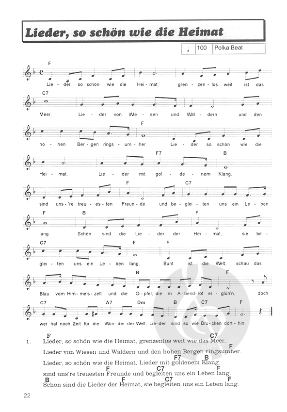 - Noten (Melodie, Text und Akkorde)