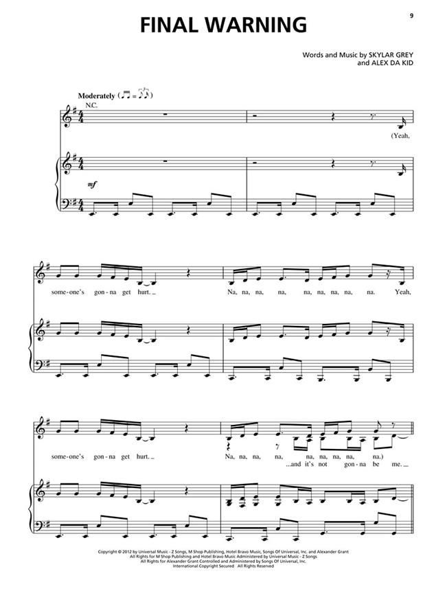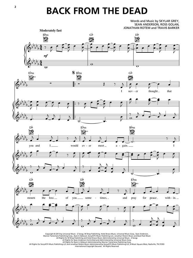 Skylar Grey wrote hits for Eminem and Rihanna and then put out her own solo album in 2013 that quickly cracked the Top Ten on the Billboard Album and Digital Album charts. Our folio includes P/V/G arrangements of all 12 tracks, including: Back from the Dead / C'mon Let Me Ride / S---Man! / Wear Me Out / and more. PARENT ADVISORY FOR EXPLICIT CONTENT.