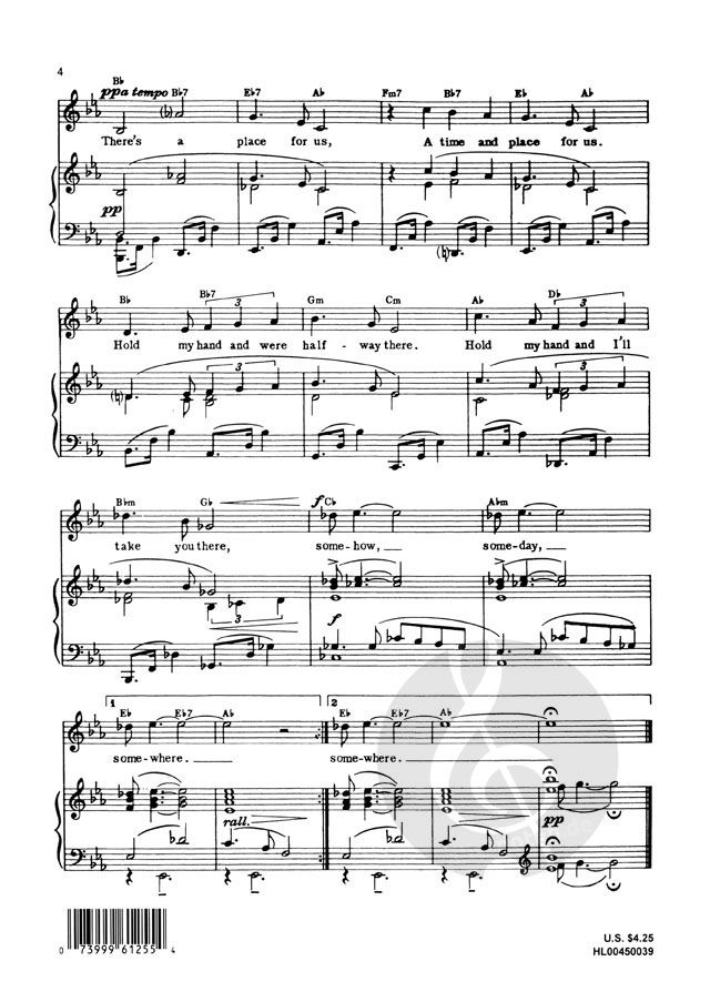A piano/vocal arrangement with chord names for this classic piece from West Side Story.