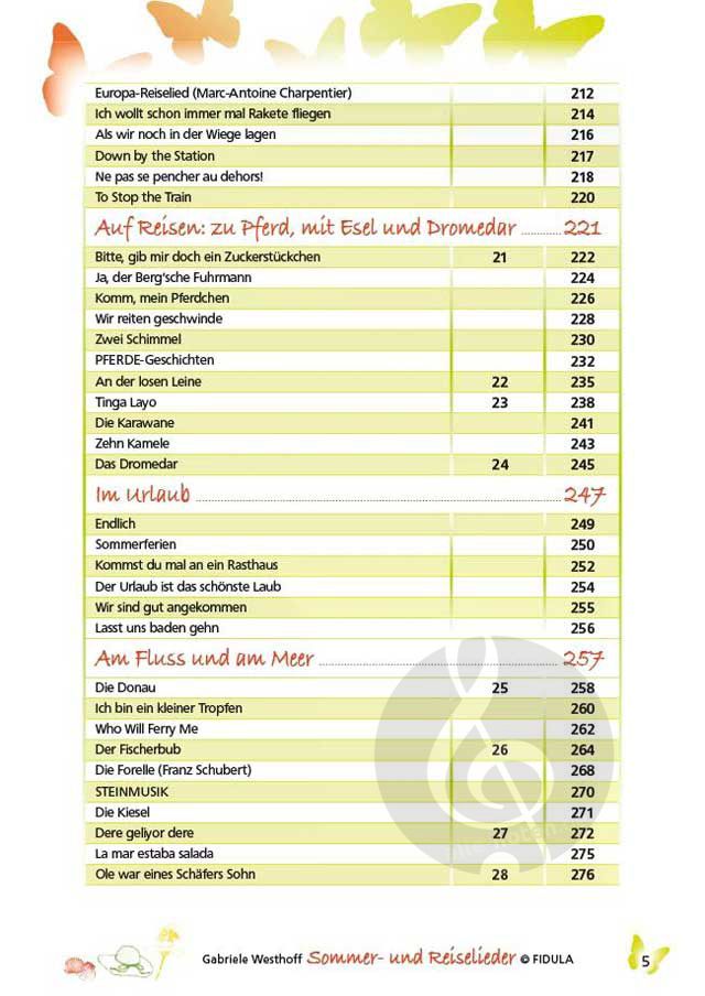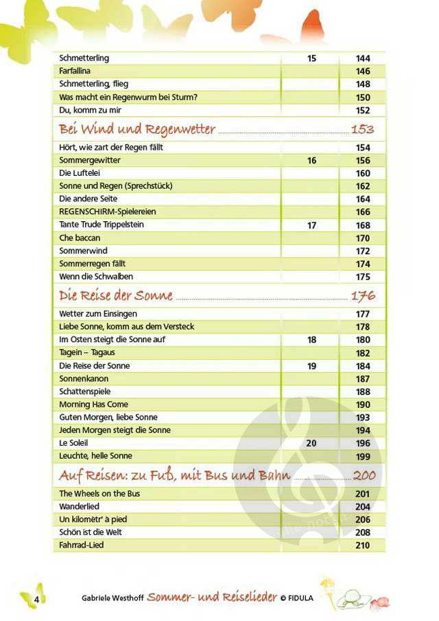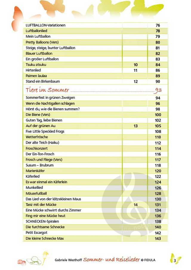 Mit den "Sommer- und Reiseliedern" liegt nun nach "Herbst- und Martinslieder" und "Frühlings- und Maienlieder" der dritte Band der Jahreszeiten-Liederbuchreihe vor. Die umfangreiche Sammlung beinhaltet in neun Kapiteln 136 Lieder, Verse und Stimmgeschichten, die Lust machen auf Sommer, Sonne, Urlaub, Eis-Essen, Spiele auf der Wiese oder Reisen ans Meer.