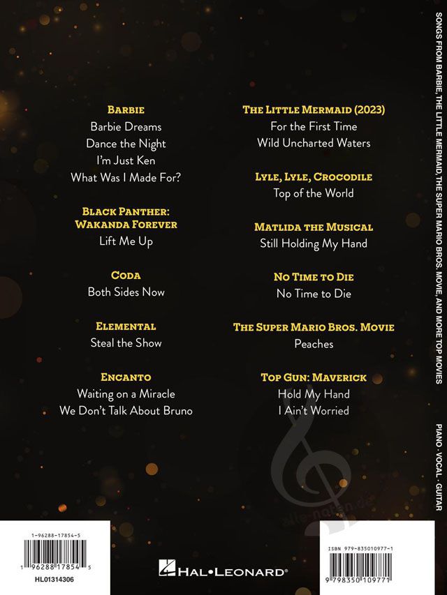 Du hast Lieder im Kopf, nachdem du einige aktuelle Kinohits gesehen hast? Dieses Liederbuch hilft dir, sie auf deinem Klavier oder deiner Gitarre zu spielen!