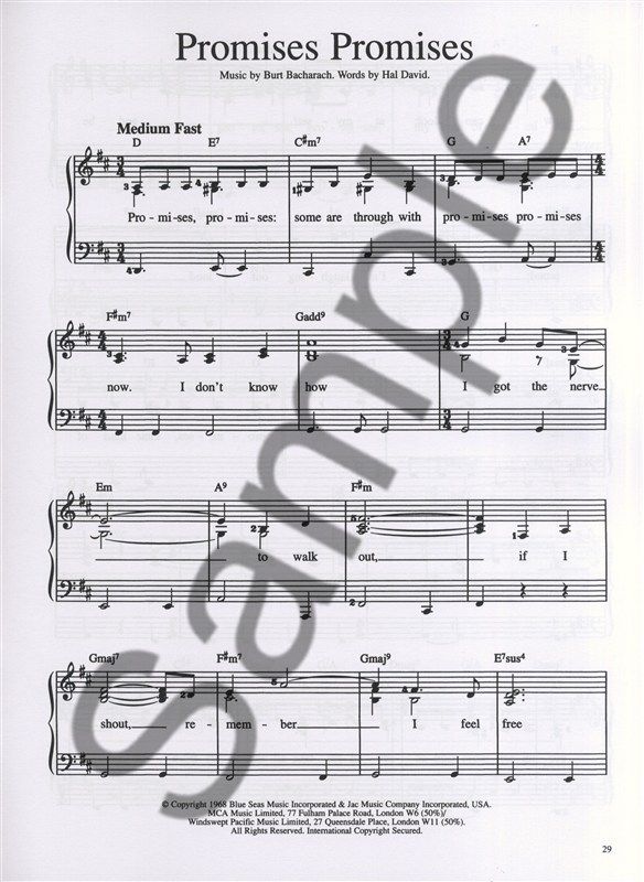23 beloved songs by this talented team: Alfie - (There's) Always Something There to Remind Me - Anyone Who Had a Heart - (They Long to Be) Close to You - Do You Know the Way to San Jose - I Say a Little Prayer - I'll Never Fall in Love Again - The Look of Love - Magic Moments - Make It Easy on Yourself - One Less Bell to Answer - Raindrops Keep Fallin' on My Head - Trains and Boats and Planes - Walk On By - What the World Needs Now Is Love - more.