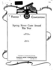 Spring Never Came Around This Year, written by Margery Cummings with words by Mack David, arranged for voice and piano with guitar chords.