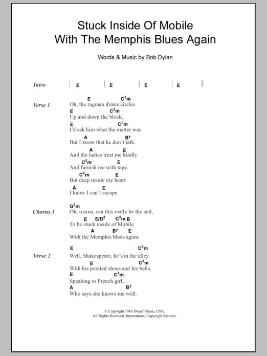 Stuck Inside Of Mobile With The Memphis Blues Again