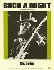 Such A Night composed by Mac Rebennack, as recorded by Dr. John in the key of F Major arranged for voice and piano with guitar chords.