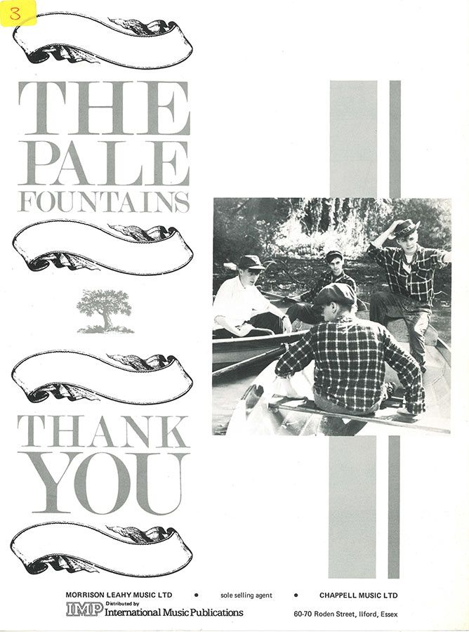 Thank You, written by Michael Head, as performed by Pale Fountains arranged for voice and piano with guitar chords.