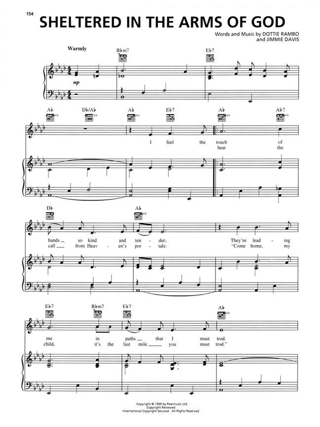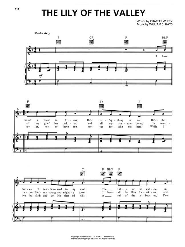 80 of the best-loved gospel songs of all time: Amazing Grace - At Calvary - Because He Lives - Behold the Lamb - Daddy Sang Bass - His Eye Is on the Sparrow - His Name Is Wonderful - How Great Thou Art - I Saw the Light - I'll FlyAway - Just a Closer Walk with Thee - Just a Little Talk with Jesus - Mansion over the Hilltop - The Old Rugged Cross - Peace in the Valley - Will the Circle Be Unbroken - Wings of a Dove - more.