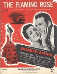 The Flaming Rose, written by Daniele Amfitheatrof with words by Mack David, from the Paramount Picture 'Spanish Affair', arranged for voice and piano with guitar chords.