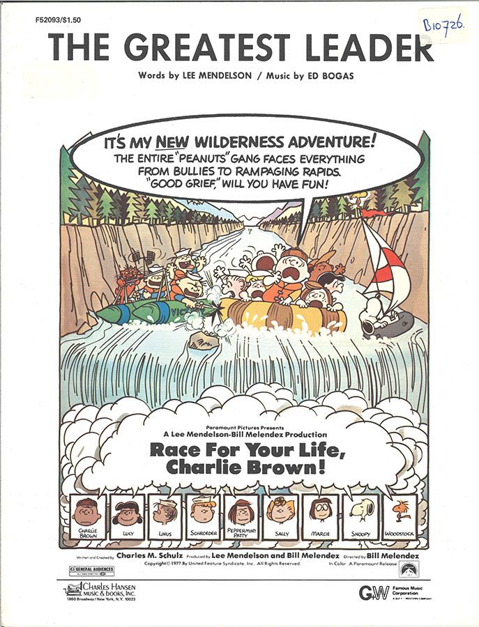 The Greatest Leader, from the Paramount Picture 'Race For Your Life Charlie Brown', written by Ed Bogas with words by Lee Mendelson, arranged for voice and piano with guitar chords.