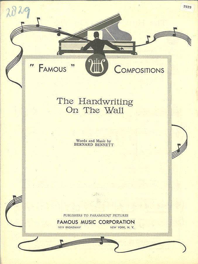 The Handwriting On The Wall, written by Bernard Bennett, arranged for voice and piano with guitar chords.