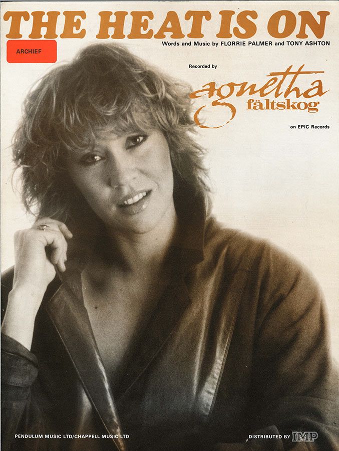 The Heat Is On, written by Florrie Palmer and Tony Ashton, as recorded by Agnetha Fältskog arranged for voice and piano with guitar chords.