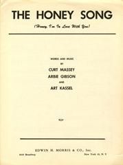 The Honey Song (Honey, I'm In Love With You) composed by Curt Massey, Arbie Gibson and Art Kassel in the key of G Major arranged for voice and piano with guitar chords.