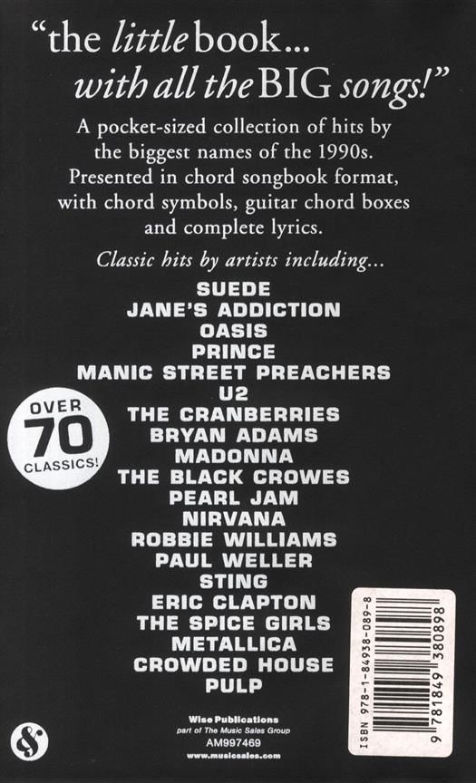 A pocket-sized collection of hits by the biggest names of the 1990s. Presented in chord songbook format, with chord symbols, Guitar chord boxes and complete lyrics.