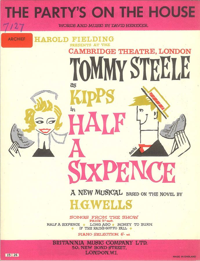The Party's On The House, written by David Heneker, from the musical 'Half A Sixpence', arranged for voice and piano with guitar chords.
