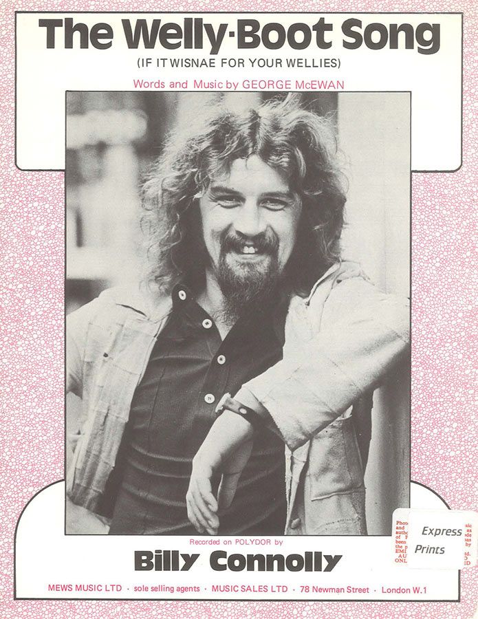 The Welly-Boot Song (If It Wisnae For Your Wellies), written by George McEwan, as recorded by Billy Connolly, arranged for voice, guitar and piano.
