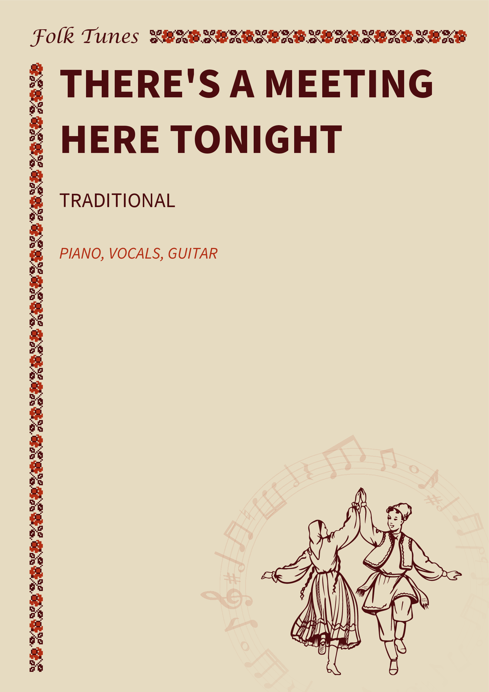 Dieses Notenheft enthält die Originalnoten zum Folk-Song "There's a meeting here tonight" für Klavier, Gesang und Gitarre. Leichter Schwierigkeitsgrad in F-Dur.